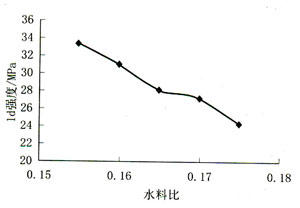 從圖 4 可以看出,當水料比小于 0.16 時,硬化體的 1d 強度大于 30MPa ,但從圖 5 看出,其初始流動度小于 260mm ,不能滿足標準要求。隨著拌合水量增加,初始流動度增大,硬化體的“強度有所下降。當水料比為 0.1 6 ~ 0.17 時,灌漿料具有較好的流動性能,同時早期強度較高。 3.3 膨脹率