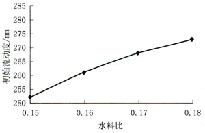 圖 2 、圖 3 表明,隨著緩凝劑摻量的增加,灌漿料的凝結時間延長,但灌漿料早期強度降低。在滿足可操作時間的基礎上,應盡可能提高灌漿料的早期強度,因此,實驗中緩凝劑的摻量取 0.18 %。 3.2 流動度