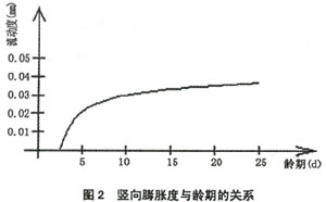 試驗結果表明:同國外灌漿料相比,流動終止所需時間要長,但流動距離都比較大;同國內的灌漿料相比,無論是流動距離,還是流動終止所需要的時間,都有較大的優勢。作為高性能灌漿材料,必須具有很好的流變性,在施工過程中盡量不采用輔助措施,完全依靠自身的流變行為,就能順利地把整個灌漿層填充飽滿。 1.2 豎向膨脹