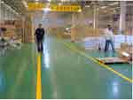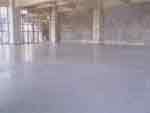 2、施工機(jī)具 除常規(guī)混凝土地坪使用的振搗設(shè)備外,需另備以下機(jī)具。 ( 1)除水工具:真空吸水泵或一般塑料管。 ( 2)整體抹光機(jī):抹光機(jī)加圓盤時(shí)主要是起木(鋼)抹作用,用以去除混凝土表面浮漿及整平;卸下圓盤裝上三葉鋼片,可進(jìn)行地坪壓光(鋼片角度可調(diào)整)。 3、施工工藝流程 混凝土澆筑并整平→抹光機(jī)振實(shí)、刮平→第一次鋪撒金剛砂復(fù)合材料→抹光機(jī)揉壓、抹平→第二次撒金剛砂復(fù)合材料→抹光機(jī)揉壓、抹平→邊角壓光→整體抹平壓光→養(yǎng)護(hù)。 4、基層混凝土施工注意事項(xiàng) ( 1)應(yīng)確保混凝土的水泥用量及強(qiáng)度,控制粉煤灰摻量。混凝土用機(jī)械振搗,采用中砂,嚴(yán)禁用海砂及超細(xì)砂,含泥量不大于3%。 ( 2)嚴(yán)格控制混凝土水灰比,杜絕為方便施工而摻水過(guò)多,水灰比宜為0.5 ± 0.05。 ( 3)混凝土每天的澆筑面積應(yīng)控制在800m 2 以下,支邊模時(shí)用鋼模(刷脫模劑)分倉(cāng)。分倉(cāng)不直時(shí),應(yīng)在下次施工前用切縫機(jī)彈線修正后再澆筑混凝土,縫應(yīng)與地坪成型后的分倉(cāng)縫位置相一致。 ( 4)注意混凝土施工塊的邊角部位應(yīng)反復(fù)振搗,保證密實(shí),再用木抹子人工拍漿。 ( 5)混凝土厚度應(yīng)不小于80mm,灰餅打點(diǎn)標(biāo)高必須精確,嚴(yán)格控制邊模板的整體標(biāo)高。 ( 6)冬期施工時(shí)環(huán)境溫度應(yīng)高于5℃,溫度較低時(shí)混凝土內(nèi)應(yīng)適當(dāng)摻加早強(qiáng)劑。 5、耐磨層施工 ( 1)基層混凝土初凝時(shí)(約3~4h),即可進(jìn)行耐磨地坪施工,先在抹光機(jī)上安裝圓盤,整體打磨混凝土并從周邊逐漸向內(nèi)收抹,起到平整和提漿作用,平整度偏差控制在2m范圍內(nèi)不超過(guò)3mm。 ( 2)第一次鋪撒金剛砂硬化劑的時(shí)間須嚴(yán)格控制,鋪撒過(guò)早會(huì)使金剛砂沉人混凝土,影響表面強(qiáng)度;鋪撒太遲,混凝土已經(jīng)凝固,不能與混凝土粘結(jié)而起不到應(yīng)有的效果,一般在腳踩下陷不超過(guò)5mm時(shí)開(kāi)始鋪撒第一次。墻柱及靠近門、模板邊等部位的混凝土失水較快,應(yīng)先鋪撒。 ( 3)第一次將2/3金剛砂硬化劑材料均勻撒布在混凝土表面(不均勻處用刮板刮勻);待材料吸收混凝土中的水分、表面出現(xiàn)返潮顏色變灰暗后,即開(kāi)始第一次抹平。采用裝圓盤的抹光機(jī)碾磨分散,使其與基層混凝土漿結(jié)合在一起,注意不要搓抹過(guò)度。 ( 4)隨即將余下的1/3料均勻撒布在混凝土表面,撒鋪方向與第一次垂直,進(jìn)行第二次抹平工作,最后用裝刀片的抹光機(jī)完成抹光工作。注意隨混凝土凝固時(shí)間調(diào)整刀片傾斜角度(轉(zhuǎn)速及角度視硬化情況調(diào)整),抹光機(jī)作業(yè)時(shí)應(yīng)縱橫交錯(cuò)(3次以上)進(jìn)行。邊角部位可采用人工鋼抹子抹光。 ( 5)耐磨地坪混凝土終凝后即開(kāi)始養(yǎng)護(hù),在太陽(yáng)直射處可用專用養(yǎng)護(hù)劑,在地下室等陽(yáng)光照射不到處可澆水養(yǎng)護(hù),養(yǎng)護(hù)時(shí)間7d以上。 ( 6)抹光機(jī)抹光后,面層若有抹紋可用鋼抹子進(jìn)行有序同向的人工壓光。 ( 7)耐磨地坪完成24h內(nèi)即可拆邊模,拆模后邊緣不齊處可用切割機(jī)切齊。 6、切縫 硬化劑地面施工完成 7d后,按結(jié)構(gòu)設(shè)計(jì)要求鋸切收縮縫(類似于混凝土路面切縫),縫深20mm左右。對(duì)混凝土框架結(jié)構(gòu),可按柱網(wǎng)尺寸切縫,亦可按業(yè)主意圖切縫,填縫材料可采用瀝青、硅膠等。 7、修補(bǔ)作法: 若硬化劑地面損壞,可采用兩種方式修補(bǔ)。 ( 1)局部破損可用丁苯乳膠加水拌和篩除骨料的硬化劑材料配制的膠泥刮膩?zhàn)有扪a(bǔ)。將破損區(qū)清理干凈,充分浸水潤(rùn)濕,再用丁苯乳膠加水乳液進(jìn)行涂刷。 ( 2)較大面積破損可根據(jù)需要畫(huà)線鋸切,鑿掉面層及部分基層混凝土,再清理潤(rùn)濕,掃素水泥漿,澆搗混凝土,最后施工硬化劑面層。 8、注意事項(xiàng)及質(zhì)量驗(yàn)收 ( 1)外觀質(zhì)量及表面平整度應(yīng)符合建筑地面工程施工質(zhì)量驗(yàn)收規(guī)范中外觀質(zhì)量的驗(yàn)收標(biāo)準(zhǔn)。由于磨光 后的地坪表面非常光滑,車庫(kù)的行車道部位須做橡膠(或其他材料)止滑坎。 ( 2)抗沖擊性能檢查:對(duì)齡期28d的混凝土采用重2250g鋼球,分別從1m、2m高處自由落下沖擊耐磨地面。墜落高度為1m時(shí),凹坑直徑應(yīng)小于或等于12.0mm,深度小于或等于0.30mm;墜落高度為2m時(shí),凹坑直徑應(yīng)小于或等于14.0mm,深度小于或等于0.50mm;地面硬度應(yīng)符合要求。 ( 3)金剛砂耐磨材料一般嵌入混凝土3mm深形成硬化層,可根據(jù)業(yè)主要求做成水泥原色、綠色、黃色 等不同顏色。在深圳地區(qū)采用該地面會(huì)增加造價(jià)14~15元/m 2 ,其中人工費(fèi)3元/m 2 左右,金剛砂材料9元/m 2 左右(按5kg/m計(jì)算),顏料2~3元/m 2 。 [應(yīng)用實(shí)例2] 耐磨彩色地面硬化劑施工工藝