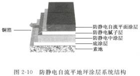 4 、導(dǎo)靜電自流平地坪 (1) 涂層系統(tǒng)結(jié)構(gòu) 涂層系統(tǒng)結(jié)構(gòu)見(jiàn)圖 2 — 11 ( 2 )涂層特點(diǎn) (3) 技術(shù)參數(shù)