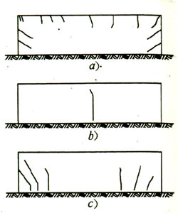 | 圖 1 溫度裂縫 a) 表面裂縫 b) , c) 收縮裂縫 |