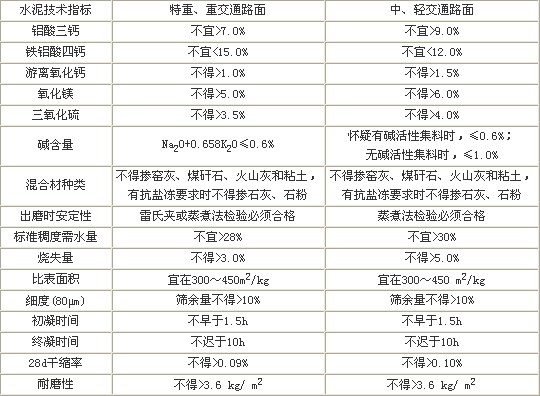 道路水泥混凝土的組成材料基本上與普通混凝土相同,也是由膠凝材料、集料和外加劑等材料組成,但是由于道路混凝土的特殊性,某些對普通混凝土影響不大的原材料,對道路混凝土對有著顯著的影響,因此,道路混凝土對混凝土原材料質量有著特殊的要求。本文主要介紹道路水泥混凝土對水泥的要求,不涉及混凝土用的其它原材料。