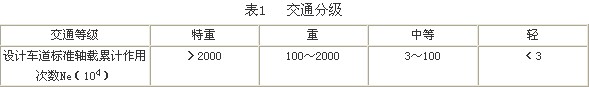 水泥混凝土路面所承受的軸載作用,按設計基準期內設計車道所承受的標準軸載累計作用次數分為4級,分級范圍如表1所示。