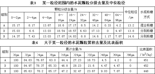 1)由于采用了分別粉磨方式,可根據需要調整水泥中粗細顆粒的比例和細度,使水泥中的細粒子更好地填充在粗顆粒所包圍的空隙內,有利于水泥漿體形成較致密的結構。這與國外研制超高強水泥的作用機理有相似之處。