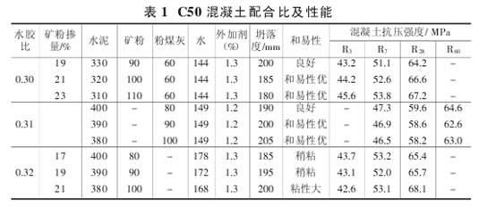 2 礦粉及粉煤灰采用“單摻”、“雙摻”在我標段 C50 混凝土 30米預制箱梁中的經驗總結