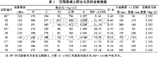 由于石屑混凝土實現商品化的真正難點在于實現大流動性、高工作性且坍落度經時損失小,所以本試驗研究以泵送混凝土目標為主,兼顧小坍落度混凝土。