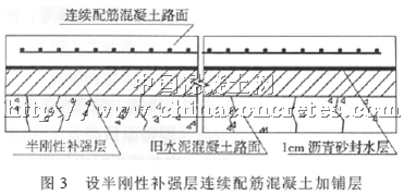 ( 3) 設(shè)半剛性補(bǔ)強(qiáng)層連續(xù)配筋混凝土加鋪層