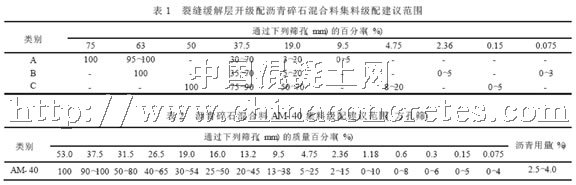2002 年在濟棗西線鋪筑了900 m 長的AM- 40特粗粒徑裂縫緩解層試驗路段。特粗粒徑瀝青碎石AM- 40 的級配范圍按表2選用。