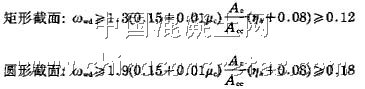 式中:ƒyd是鋼筋的屈服設計強度;ƒcd是混凝土的設計校體強度;ρw是含箍率,根據下式來定義:
