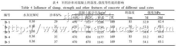 2.2 沙率對混凝土性能的影響與摻量的優化