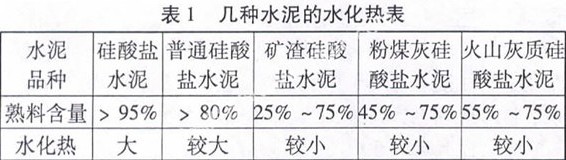 混凝土具有很高的抗壓強度和很低的抗拉強度,應嚴格控制混凝土原材料的質量和技術標準,從而降低收縮應力和溫度應力,減少裂縫的產生。優先選用低水化熱的收縮量水泥,如中熱硅酸鹽水泥或低熱礦渣硅酸鹽水泥,在摻加泵送劑或粉煤灰時,也可選用礦渣硅酸鹽水泥(幾種水泥的熟料含量及水化熱見下表)。水泥的細度要符合國家標準,細度大的水泥易產生干燥收縮裂縫。
