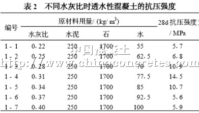 本文通過試驗,研究了水灰比、粗骨料的種類和級配、膠骨比、礦物摻合料以及其它增強材料對透水性混凝土材料強度的影響,試驗還測定了透水性混凝土的透水性。