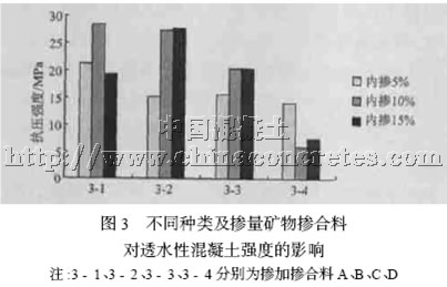 4.3 摻合料對透水性混凝土強度的影響