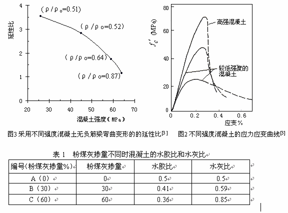 有鑒于高強混凝土的優點和缺點,在土木工程學會高強與高性能混凝土委員會制定的《高強混凝土設計與施工指南》中關于高強混凝土的設計,最高考慮到C80,并建議使用鋼管混凝土來提高構件延性比。問題是,由于人們以強度作為衡量混凝土水平和質量的定勢,往往從設計到混凝土生產,再到施工,對混凝土的強度層層加碼,并非工程實際要求那么高的強度。大多數工程所要求的是C30、C40這樣中等強度等級的混凝土。正如吳中偉所論述:“如果強調高性能混凝土必須在C50以上,則必然大大限制高性能混凝土的應用范圍。大量使用的鋼筋混凝土建筑物如低層和多層房屋以及高層房屋的上層構件,又如海工、水工,尤其是在不利環境中的結構物大體積混凝土等,對強度要求并不高,……但對耐久性要求卻很高,……高性能混凝土不只是高強度的,而是包括各強度等級的……。”[4]
