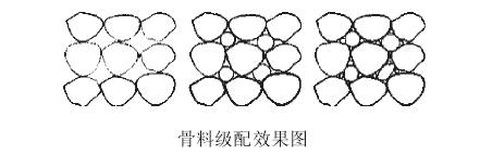 砂率是指混凝土中砂的用量占砂石總用量的百分率。混合料中,砂用來填充石子的空隙。在水泥漿總量一定的條件下,若砂率過大,則骨料的總表面積及空隙率增大,混凝土混合物就顯得干稠,流動性小,如要保持一定的流動性,則要多加水泥漿,增大單位用水量;若砂率過小,砂漿量不足,不能在粗骨料的周圍形成足夠的砂漿層起潤滑和填充作用,也會降低混合物的流動性,使混凝土拌和物的粘聚性、保水性變差,使混凝土混合物顯得粗澀,粗骨料離析,水泥漿流失。砂率的變動,會使骨料的總表面積有顯著改變,從而對混凝土拌和物的和易性有較大影響。由此可見砂率是影響泵送混凝土的一個重要因素。取樣測定,在橡膠壩底板混凝土澆筑施工時實際拌和中砂率為30%,因此砂率過小是產生泌水的一個因素。在施工中我們使用的砂是從河道中直接采取的,砂子偏粗且偏多,造成級配偏差較大,級配不合理性也大大增強混凝土泌水。從下圖可以看出:如果用同樣粒徑的砂,空隙率最大;兩種粒徑的砂搭配起來,空隙率就減小;三種粒徑的砂搭配,空隙率就更小。因此,要減小砂粒間的空隙,就必須有大小不同的顆粒合理搭配。級配不良,細顆粒空隙增大,自由水上升,易引起混凝土泌水。