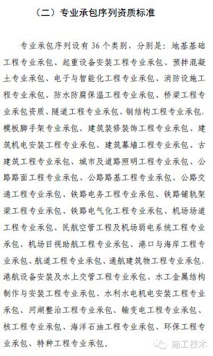11月6日,住建部在官網發出《住房城鄉建設部關于印發<建筑業企業資質標準>的通知》,與《建筑業企業資質等級標準》(建建[2001]82號)對比,新資質標準中的專業承包資質由原先的60項減少為36項,與建筑工程領域有關的變化:土石方工程、混凝土預制構件、高聳構筑物、電梯安裝、金屬門窗工程、預應力工程、爆破與拆除工程專業承包企業資質;合并防水工程、防腐保溫工程為防水防腐保溫工程;預拌商品混凝土專業更名為預拌混凝土專業,附著升降腳手架專業承包擴大為模板腳手架專業承包......