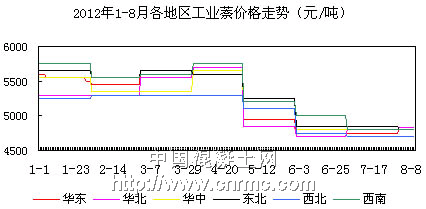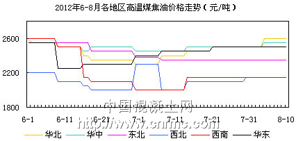 華東地區(qū)目前市場(chǎng)主流報(bào)價(jià)4800-4900元,5-8月以來(lái)價(jià)格已下調(diào)200元左右,市場(chǎng)交投一般,近期煤焦油深加工市場(chǎng)整體開工率較低,而下游減水劑市場(chǎng)持續(xù)低迷走勢(shì),部分地區(qū)廠家處于停滯狀態(tài),開業(yè)率維持在3成左右。而終端建筑市場(chǎng)新增開工面積嚴(yán)重不足,導(dǎo)致8月市場(chǎng)回暖無(wú)望。