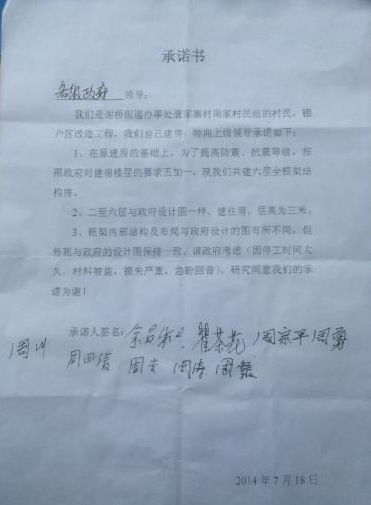 李翔說,自家房屋被拆后,他從當?shù)叵嚓P部門了解到,村民自建房“只能按照磚混結構修建”。而100多戶村民聯(lián)名要求修建混凝土框架結構的申請,被以“防止以后加層改建”、“防止以后商業(yè)化”為由遭到拒絕。