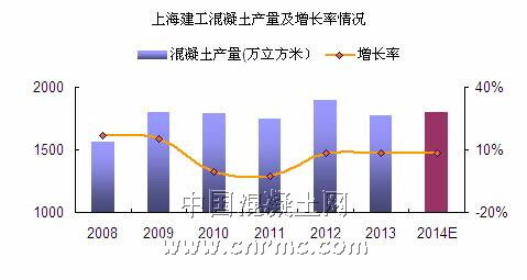 值得一提的是,2013年上海建工從美國(guó)《工程新聞紀(jì)錄》(ENR)雜志評(píng)選的"全球最大的250家國(guó)際工程承包商"躍進(jìn)位列13名。在2013年年報(bào)中,上海建工產(chǎn)銷混凝土產(chǎn)銷商品混凝土 1768 萬(wàn)立方米,生產(chǎn)攪拌車 1613 輛。而在2014年上半年年報(bào)中共產(chǎn)銷混凝土866萬(wàn)立方米、混凝土攪拌車588輛,上海建工目前發(fā)展勢(shì)頭良好。