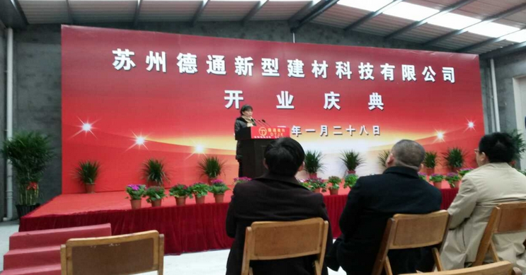 1月28日,蘇州德通新型建材科技有限公司(簡稱德通建材)正式開業投產。德通建材是德通集團在蘇州吳江的重點投資產業項目,其在設備軟硬件配套、生產規模、品質、應用技術和綜合服務各方面的投入上都領先業界,定位高端砂漿市場。
