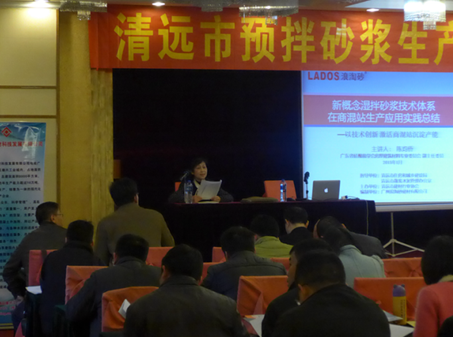 為進一步貫徹落實《廣東省促進散裝水泥發展和應用規定》 (廣東省人民政府令第156號)和《清遠市人民政府關于限期禁止在施工現場攪拌砂漿的通告》 (清府〔2014〕113號)的文件精神,推動預拌砂漿在本市區的使用,讓企業盡快熟悉和掌握預拌砂漿生產與應用技術。清遠市住房和城鄉建設局、清遠市散裝水泥管理辦公室委托清遠市建材行業協會,公開向社會購買培訓服務。廣州浪淘砂建材有限公司作為濕拌砂漿發展先驅企業,榮幸地承擔此次積極而意義的培訓工作。1月30日上午,冷空氣南下,一夜之間寒風凄凄,清遠市預拌砂漿生產與應用技術培訓班在清遠市迎賓館順利召開。清遠市住房和城鄉建設局王副局長、清遠市散裝水泥管理辦公室何主任、市發展和改革局(投資評審中心)、市財政局(投資審核中心)、市城鄉規劃局、市代建項目管理局、市住房和城鄉建設管理局相關業務科室、各縣(市 、區)住房和城鄉建設局相關負責人、市有關建設行業協會(建筑業、勘察設計、房地產、建材、造價分會)、設計單位、監理公司、圖審機構、施工企業、造價咨詢公司、建設單位、商品混凝土生產企業等160余人參加此次培訓班。