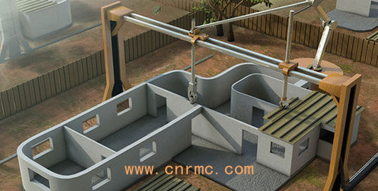 “輪廓工藝”在24小時(shí)之內(nèi)就能打印出一棟兩層樓高、2500平方英尺(約合232平米)的房子。“輪廓工藝”3D打印技術(shù)目前已可以用水泥混凝土為材料,按照設(shè)計(jì)圖的預(yù)先設(shè)計(jì),用3D打印機(jī)噴嘴噴出高密度、高性能混凝土,逐層打印出墻壁和隔間、裝飾等,再用機(jī)械手臂完成整座房子的基本架構(gòu)。全程由電腦程序操控?!拜喞に嚒逼鋵?shí)就是一個(gè)超級(jí)打印機(jī)器人,其外形像一臺(tái)懸停于建筑物之上的橋式起重機(jī),兩邊是軌道,而中間的橫梁則是“打印頭”,橫梁可以上下前后移動(dòng),進(jìn)行X軸和Y軸的打印工作,然后一層層地將房子打印出來(lái)。