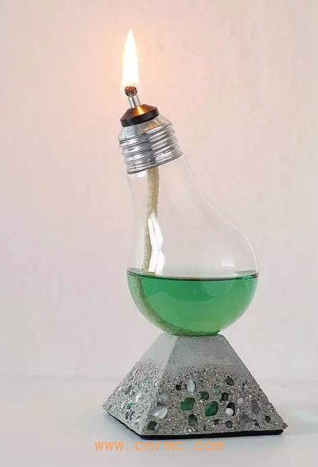 舊燈泡可不要丟棄,因為它有新用處了。下面這個獨特的油燈在設計中使用了回收而來的白熾燈泡,設計師親手制作了混凝土或者木制的燈托,環保又時尚。
