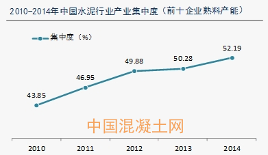 為貫徹國務(wù)院41號文件精神,化解水泥行業(yè)產(chǎn)能過剩矛盾,遏制新增產(chǎn)能,在2014年年初,中國建材聯(lián)合會和中國水泥協(xié)會聯(lián)合發(fā)布了《水泥行業(yè)推進(jìn)兼并重組實(shí)施意見》,提出,加快推進(jìn)水泥行業(yè)兼并重組是行業(yè)轉(zhuǎn)型升級的必然選擇。到“十二五”末,前十大水泥企業(yè)市場集中度達(dá)45%以上;全國培育出5-10家產(chǎn)能過億噸,礦山、骨料、商品混凝土、水泥基材料制品等產(chǎn)業(yè)鏈完整,核心競爭力和國際影響力強(qiáng)的企業(yè)集團(tuán)。