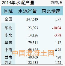2014年中國水泥需求增長進(jìn)一步下滑至1991年以來的新低,六大區(qū)域中,華北和東北水泥需求總量出現(xiàn)下降態(tài)勢。其中,華北下滑最為嚴(yán)重。2014年華北水泥產(chǎn)量同比下降超過10%,東北同比下降3.8%。華東和西北地區(qū)水泥產(chǎn)量同比增速不到1.5%,六大區(qū)域中有四大區(qū)域的水泥產(chǎn)量增速低于全國增速。中南和西南地區(qū)2014年水泥需求依然能夠保持穩(wěn)定增長,其中,中南地區(qū)需求仍然達(dá)到了7.8%的較快增長。西南和中南地區(qū)也是2014年水泥熟料生產(chǎn)企業(yè)間并購較活躍的地區(qū)。