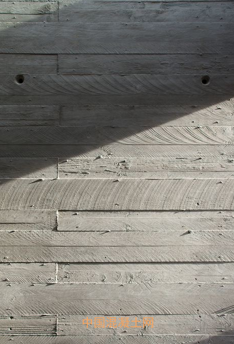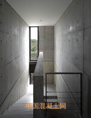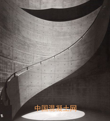 安藤的建筑一般全部或局部采用清水混凝土墻面作為室外或室內墻面,這種墻面不加任何裝飾,墻面上的圓孔是殘留的模板螺栓。清水混凝土演奏一曲光與影的旋律。安藤在材料中攙進了日本的傳統手藝,利用現代的外墻修補技術,將水泥墻面拆掉模板后進行處理,他將混凝土運用到了高度精煉的層次。在清水混凝土的施工中,傳統手工藝和現代建筑之間并不矛盾,高超的木模制造工藝、優質的混凝土鑄造以及嚴格的工程管理,共同造就了“安氏混凝土美學”。