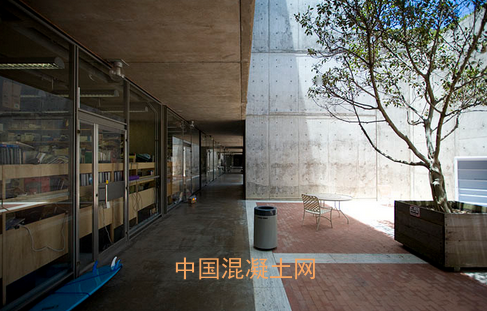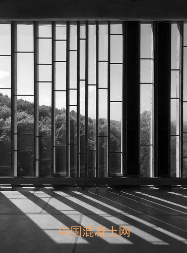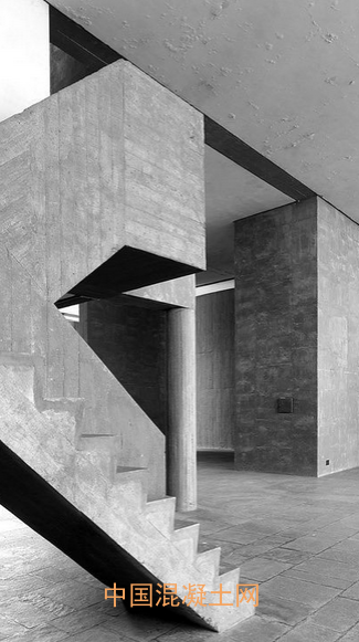 路易 斯?康對混凝土的要求是:貫穿整體的秩序感和通過完整墻面表現出來的美感。 金貝爾美術館位于美國德克薩斯州沃思堡的郊區,于1972年建成。康在此展現了其個人對于建筑材料的偏好:將混凝土柱和薄殼形拱頂結構裸露在外,而非承重 墻則采用羅馬灰華石及玻璃板,以滿足不同空間和位置的采光要求。灰華石及玻璃板同混凝土之間沒有過強的對比,所形成的空間質感近同,肌理混合為一。