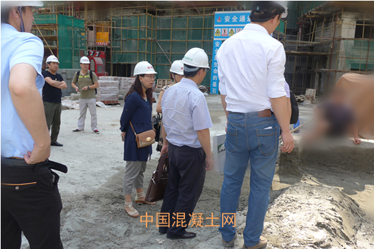 調(diào)研考察團(tuán)在工地參觀砂漿池