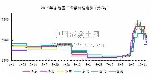 九月下旬,工業(yè)萘價(jià)格再次出現(xiàn)反常狀態(tài)。價(jià)格與之前相比一落千丈,根據(jù)中國混凝土網(wǎng)監(jiān)測的數(shù)據(jù)顯示,截至10月22日價(jià)格跌落至6000元/噸附近,部分地區(qū)已跌破6000元/噸。各地市場也均以弱勢運(yùn)行,成交量較為清淡,各地區(qū)市場交投氣氛不濃,廠家走貨不暢,目前成交量多以老客戶為主。