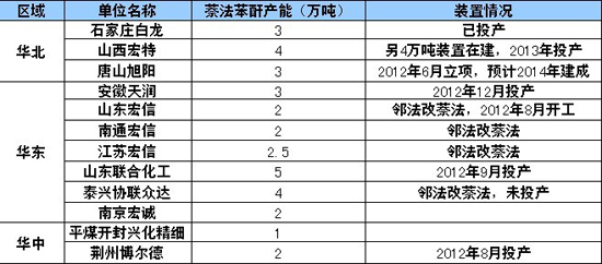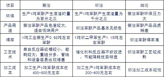 早在上世紀80年代,德國BASF公司便開發出了萘法苯酐。而在1990年之前,中國一直使用工業萘制造苯酐。但隨著鄰二甲苯法制苯酐的后續引入,中國開始將工業萘法制苯酐拋棄。不過從目前的市場來看,萘法苯酐的盈利空間遠大于鄰法苯酐。以2012年2月市場價格來看,工業萘的價格為5700元/噸,鄰二甲苯的價格為10600元/噸,而當時的苯酐價格為11100元/噸,換句話說,算上制造成本,萘法苯酐將比鄰法苯酐多盈利近4000元/噸。這對廠家來說是個極大地誘惑。另一方面,2012年上半年,受國際原油等外部經濟環境及下游苯酐需求走低影響,鄰二甲苯的價格也隨之下降。石化廠家雖然不斷下調鄰苯的價格,但是苯酐市場仍然未見起色,利潤受到無限壓縮的廠家們把目光逐漸放到了工業萘的身上。據悉,華北、華東、華中等地的部分廠家已經逐步將鄰法改成萘法,在下半年至明年全面投產。萘法苯酐或將死灰復燃,工業萘的需求也將隨之大增。