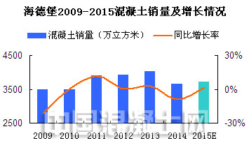 海德堡水泥集團本次排名下滑一位,集團2014年混凝土銷量達3660萬立方米,同比減少9.18%。而就在今年7月28日,海德堡水泥宣布將收購意大利水泥集團(Italcementi)45%的股份,具體來說,此次的交易的價值約為16.7億歐元,將以現金和股票方式進行收購。近日海德堡上調了公司的中期預測,以反映這一新的收購所帶來的積極影響。集團目前的目標是在2019年前的營業收入達到200億歐元以上,以及總營業利潤(EBITDA)超過50億歐元。
