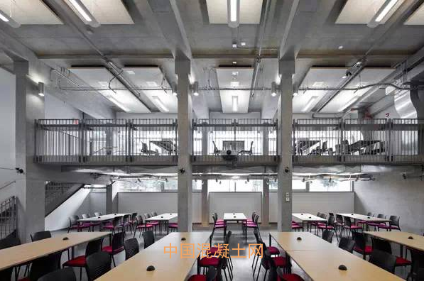 這棟是位于加拿大的The Wayne and William工程設計中心大樓。大樓為來這里學習工作的人提供了一個學習空間,提升設計技巧,培養團隊合作精神和溝通技巧。這棟建筑采用了典型的混凝土木結構相互混用的形式。冰冷的混凝土質感和溫暖的膠合梁以及紅雪松裝飾板形成良好的互動和反差。木質結構被用于一些互動功能較強的空間,如大廳。而混凝土則被用于一些需要挑空較高,防火安全較高的區域如餐廳和廚房。