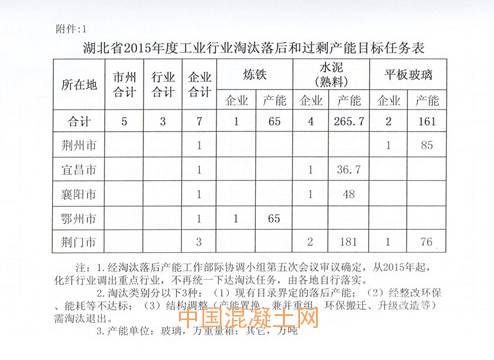 日前,湖北省發布《關于下達2015年度全省工業行業淘汰落后和過剩產能目標任務的通知》(以下簡稱《通知》),計劃淘汰水泥行業落后和過剩產能目標任務為265.7萬噸,涉及4家水泥企業。