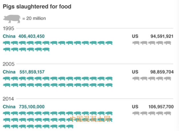 現在,一切都發生了改變。隨著中國人的消費能力激增,豬肉的消耗量大幅增長——目前,中國占到了全球豬肉消費的一半。