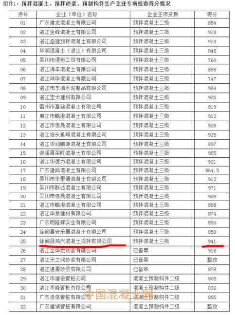 2014年湛江市住建局對全市范圍內預拌混凝土企業進行質量監督專項檢查,鴻興公司以高分位居前五名。資料鏈接: