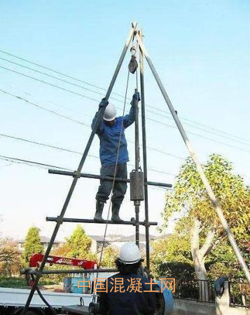 STEP3,儀式都舉行完畢,可以正式動土了。先進行住宅地基土壤的地耐力勘探試驗。