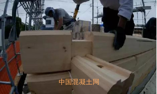 STEP11,鋼筋混凝土基礎墻頂面,進行防水、防潮、通氣處理,安放橡膠墊,現正在安裝木結構“土臺”,作為一層地面的承重骨架。