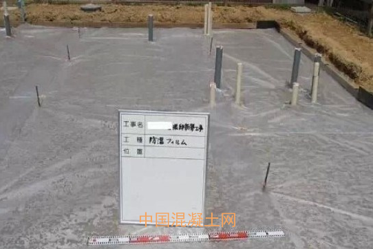 STEP8,基礎墊層上部,防水、防潮塑料薄膜的鋪設。
