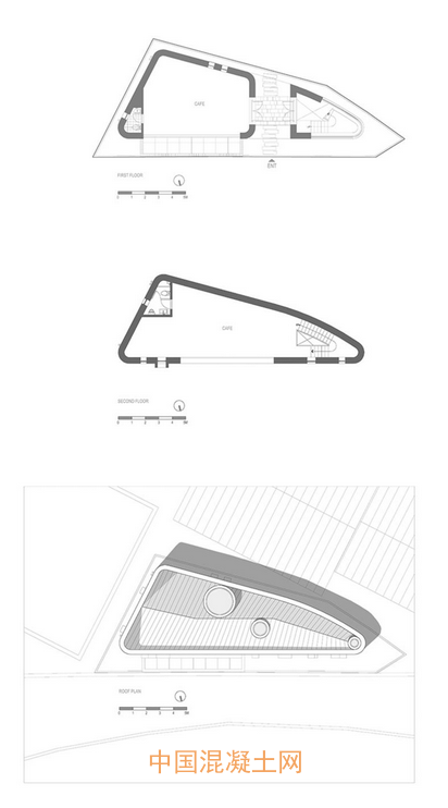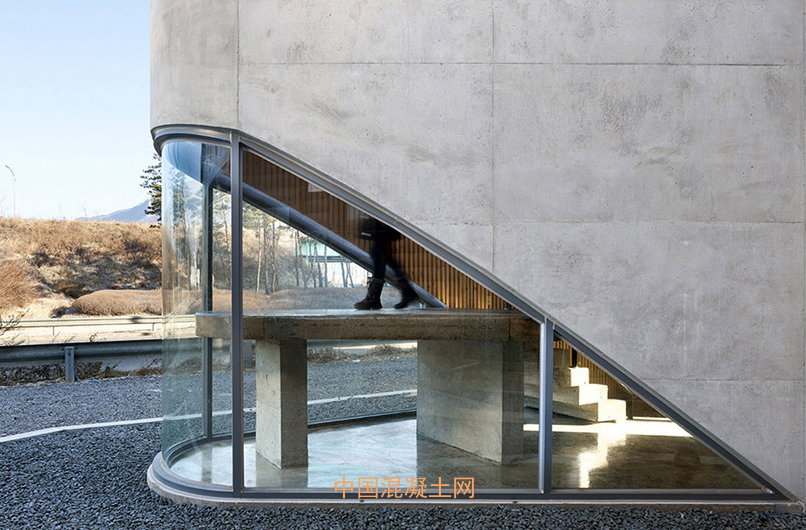韓國建筑設計事務所GAON 在首爾郊區完成了一間名叫“拉伸(extrude)”的混凝土咖啡館。這塊建筑用地因為其特殊的形狀和緊鄰繁忙馬路的狀況已經被閑置了幾十年。因此,建筑采用了具有防護性的單片外形,以此保證隱私、減少室內的噪聲污染。