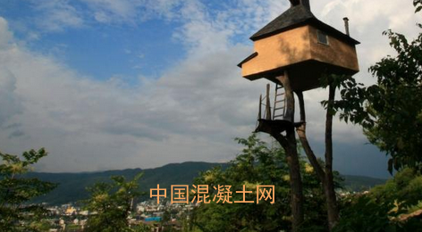 由日本建筑師藤森照信設(shè)計(jì)的這間泥土小屋用幾條纜繩緊緊地綁在高空,造型極其可愛,有一種日本動(dòng)漫的即視感。這座建筑可以拆除、安裝在任何地方。