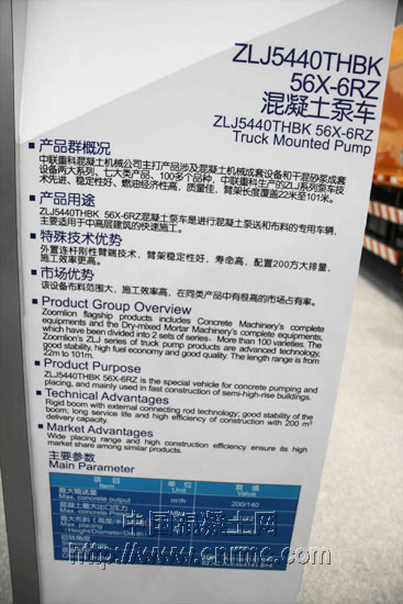 產品用途:ZLJ5440THBK 56X-6RZ混凝土泵車是進行混凝土泵送和布料的專用車輛,主要適用于中高層建筑的快速施工。