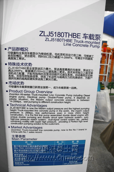 特殊技術優勢:ZLJ5180THBE是全球泵送壓力最大、泵送高度最高的車載泵、泵送壓力高達28MPa,能夠滿足250m以上建筑施工要求。首次采用獨立上裝雙柴油機動力配置,并配有獨有的雙泵雙回路開式液壓系統、自動高低壓切換系統、雙信號控制系統等,體現了機動性與超高壓力的完美結合,為客戶提供完美的超高層建筑泵送施工解決方案。