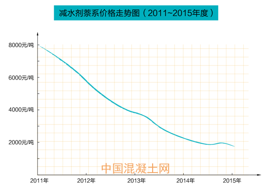 近年萘系減水劑主要原料工業萘,價格一路下滑,輝煌不在,尤其加上中國整個房地產建設放緩,混凝土減水劑用量急劇減少,這樣的情況會長時間維持。另外,萘系減水劑主要原料木質素磺酸鈣/鈉也情況相似,量能萎縮,價格低迷,整個建筑原料市場依然進入寒冬。