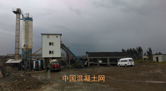 位于坦桑尼亞的南方路機集裝式斗提水泥混凝土攪拌站HZDJ125