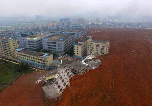 20日上午11時,深圳恒泰裕園區發生山體滑坡事故。國土資源部官微通報稱,初步查明深圳光明新區垮塌體為人工堆土,人工堆土垮塌的地點屬于建筑余泥渣土受納場,主要堆放渣土和建筑垃圾,由于堆積量大、堆積坡度過陡,導致失穩垮塌,造成多棟樓房倒塌。